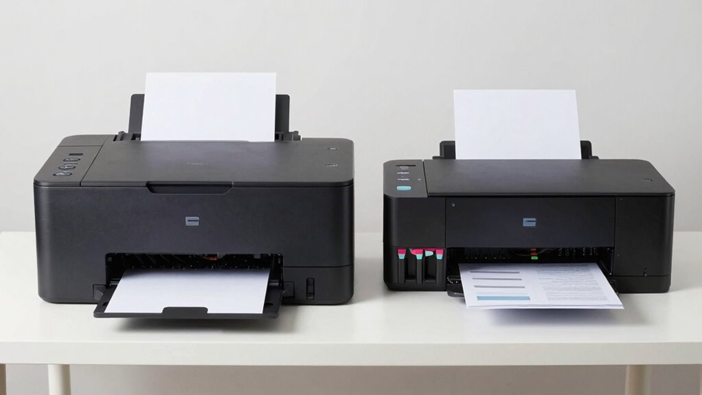 You’ll find inkjet printers excel at handling various paper types because their ink absorption adapts well to different textures like photo paper or card stock. Laser printers, however, are better suited for standard or thicker paper, as their toner adheres firmly without smudging. Consider your paper quality needs; inkjet printers offer versatility with delicate or glossy papers, while laser printers provide crisp results on regular, heavier paper types.