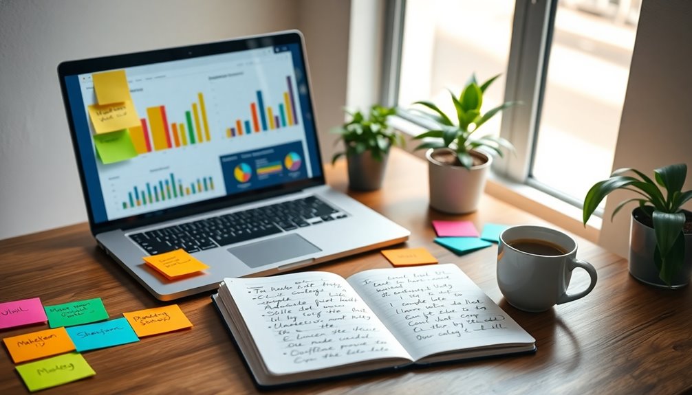 For marketing automation, platforms like Zapier streamline workflows, and Pictory transforms your blog posts into engaging videos. Don't overlook the importance of SEO; tools like Surfer SEO optimize your content for better visibility. When managing social media, consider Buffer or Hootsuite to automate your posts. By leveraging these essential tools and platforms, you'll save time and enhance your marketing efforts, allowing you to focus on growing your side hustle.