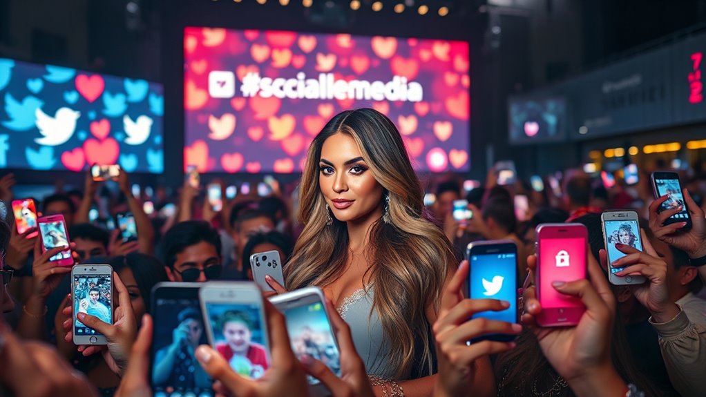 Social media transforms celebrity culture by giving stars and influencers direct, real-time access to millions of fans, changing how fame is built and managed. It boosts personal branding, allows for immediate fan engagement, and fosters authenticity, so you see a more genuine side of celebrities. This shift also democratizes fame, letting niche creators gain popularity alongside traditional stars. If you want to explore how these changes shape public perception further, there’s plenty more to uncover.