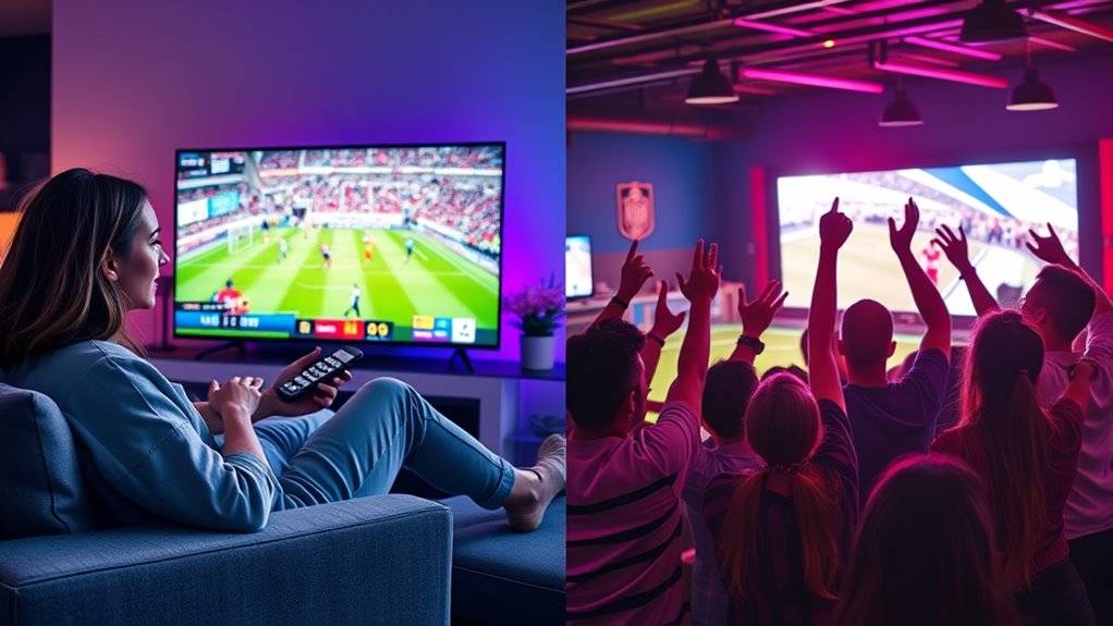 You’ll notice that viewer engagement differs between streaming and live sports. Streaming often promotes higher viewer interaction through comments, polls, and real-time chats, boosting engagement metrics. In contrast, live sports tend to generate more excitement and emotional involvement, which can lead to increased attention and sharing. Your participation influences overall engagement, so actively engaging with content enhances your experience, whether streaming or watching live.