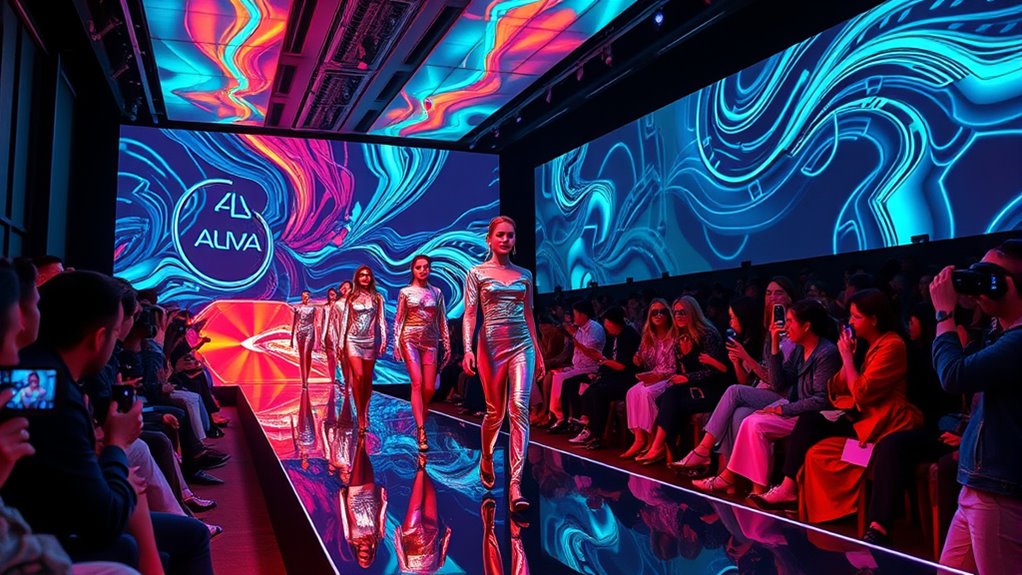 In the digital age, fashion weeks are transforming into immersive experiences thanks to live streaming, virtual runways, and augmented reality. You can easily access global shows from anywhere, interact with content in real time, and enjoy personalized features that bring collections to life. Brands like Dior and Balenciaga are reaching millions through innovative digital formats, making fashion more inclusive and sustainable. If you stay curious, you’ll discover how these changes are shaping the future of fashion events.