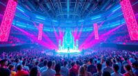 As you immerse yourself in the vibrant buzz of digital Fashion Week, you feel the pulse of flashing screens and shimmering runways right at your fingertips. Virtual front rows reveal intricate designs glowing like stars, while live streams paint a vivid tapestry of creativity. In this digital age, fashion transcends borders, wrapping you in a whirlwind of color, innovation, and possibility. You’re not just watching—you’re part of a global runway, where imagination and technology collide in dazzling harmony.