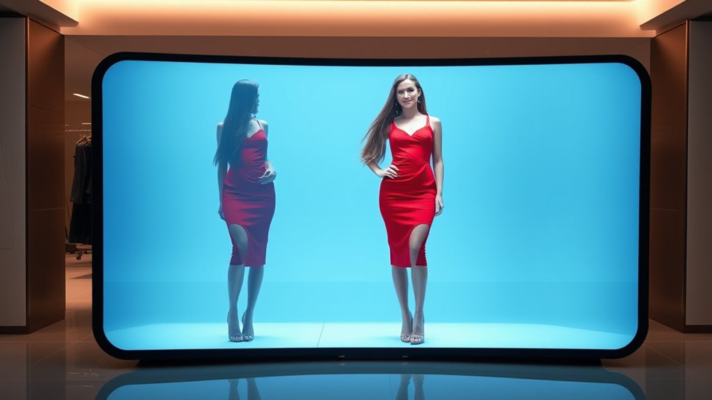 Virtual fitting rooms primarily focus on fabric realism and texture simulation, but they can’t fully replicate the feel of different fabrics. While advanced technology improves texture simulation, it mainly visualizes surface details rather than true fabric textures. You’ll see a close approximation of how fabrics look, but for the tactile experience, you’ll still need to touch the real material. Technology continues to improve, making virtual fabric realism more convincing over time.