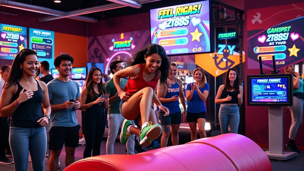 Gamified wellness challenges make fitness fun by turning routines into engaging games. You compete on leaderboards, earn rewards, and connect with others, which boosts motivation and helps you stay committed. Friendly competition and recognition tap into your natural competitive instincts, making exercise feel more exciting. These strategies turn health goals into an enjoyable adventure. Keep exploring to discover how these techniques can keep your fitness journey lively and rewarding.