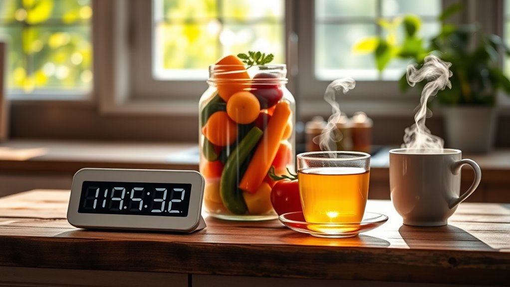 Understanding how your body responds to different fast durations helps you optimize your results. Your body needs time to switch from using glucose to burning fat for energy, which usually occurs after several hours of fasting. During this period, your insulin levels drop, and fat stores become more accessible. Consistency is essential, so choose a fasting window that you can maintain regularly without feeling deprived or deprived. Remember, fasting isn’t about extreme restriction but about creating a sustainable routine that promotes health. The more you learn about how your body reacts to various meal timings and fast durations, the better you can tailor your intermittent fasting plan to suit your lifestyle, making it easier to stick with long-term.
