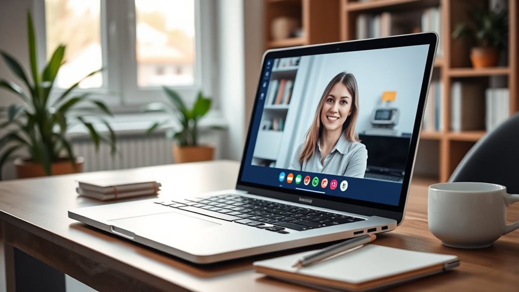 Advancements in technology are transforming teletherapy by making sessions more accessible, engaging, and effective. Telepsychiatry integration allows you to access specialized care within broader mental health platforms, streamlining your experience. Improved video conferencing tools reduce lag and enhance connection quality, ensuring smoother sessions. AI-assisted matching connects you with therapists tailored to your needs, boosting therapy’s effectiveness. Secure data storage with encryption protects your confidentiality, building trust. Mobile apps enable you to engage in therapy anywhere, increasing flexibility. Innovative tools like VR environments offer immersive exposure therapy, while wearable devices provide real-time physiological monitoring for personalized feedback. AI-driven chatbots support you between sessions, and data analytics track your progress, helping therapists tailor treatments and predict outcomes. Utilizing digital communication tools further enhances the reach and personalization of mental health care, ensuring that support is available whenever and wherever needed. Additionally, advancements in home entertainment technology facilitate more comprehensive and engaging virtual therapy sessions, making mental health support more interactive and immersive.