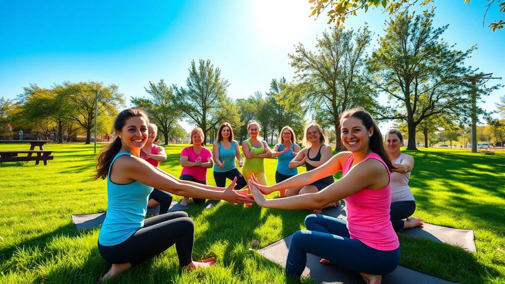 Engaging in health and wellness activities can strengthen your team by improving communication, building trust, and fostering unity. Incorporate mindfulness exercises like deep breathing or guided meditation to create a calm, supportive environment. Organize nutrition challenges and group fitness activities that boost energy and morale. These initiatives break down barriers and enhance collaboration. Continuing with these strategies will reveal even more ways to boost your team’s cohesion and well-being effectively.
