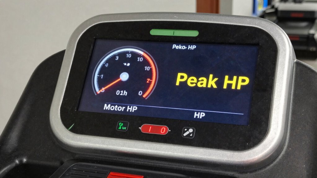 Peak horsepower numbers can be misleading because they often exaggerate a treadmill’s true capabilities. You might see high ratings that don’t match how the machine performs during your workout. To make the right choice, it’s important to focus on actual, real-world performance metrics rather than just peak horsepower.