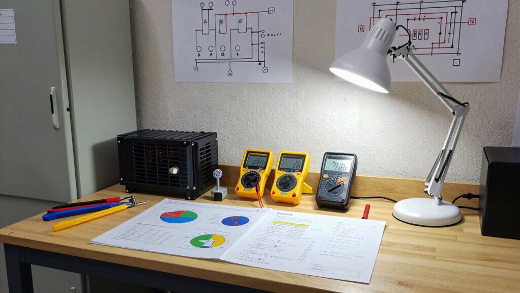 Regular testing and maintenance are essential to guarantee your generator delivers reliable backup power when you need it most. Consistently perform testing procedures, such as running the generator under load regularly, to ensure it starts and operates smoothly. Follow manufacturer-recommended generator maintenance routines, including checking oil levels, inspecting filters, and testing battery health. Create a maintenance schedule that includes visual inspections and functional tests at least once a month. Keep detailed records of all maintenance activities and test results to identify potential issues early. This proactive approach helps prevent unexpected failures during an outage. Remember, well-maintained generators are more dependable, so prioritize regular testing procedures and maintenance to keep your backup power system ready at all times.