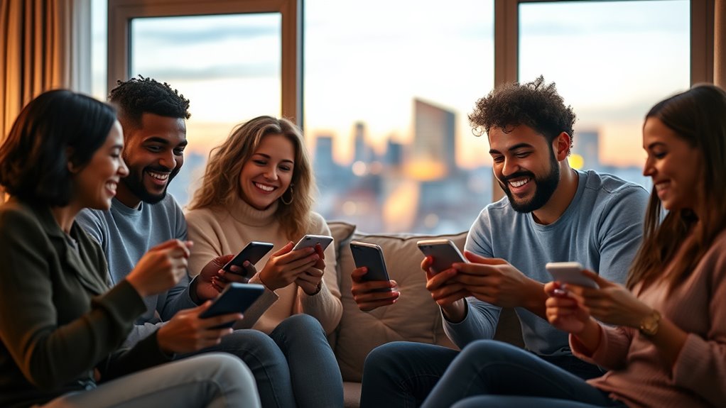 To balance screen time with quality time, prioritize quality communication by setting aside dedicated moments without devices. Practice mindful boundaries by designating tech-free zones or times, like during meals or before bed, to foster genuine connection. Be intentional about engaging fully when you’re together, avoiding distractions. This approach helps you nurture your relationship, ensuring that digital interactions complement rather than replace meaningful, face-to-face experiences.