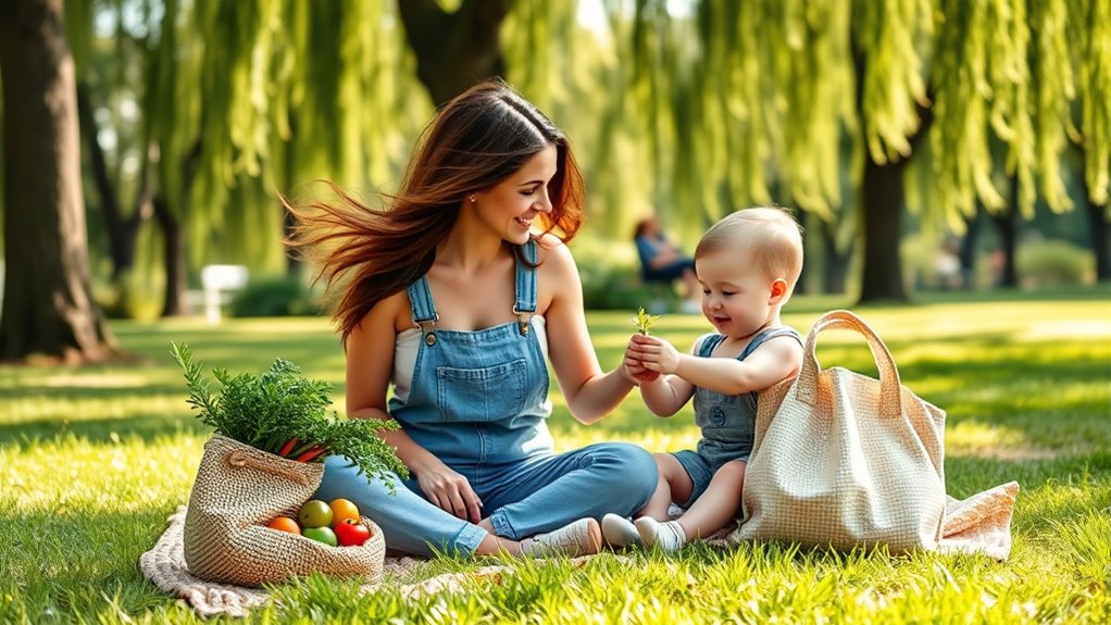 To balance sustainability efforts with your child’s developmental needs, focus on nurturing independence while supporting growth. Involve your child in eco-friendly activities like gardening or recycling, allowing them to learn and explore. Set age-appropriate boundaries that encourage responsibility without overwhelming them. Prioritize quality time and open communication, helping your child understand sustainability’s importance while respecting their need to develop emotionally and socially. This approach fosters growth and independence seamlessly.