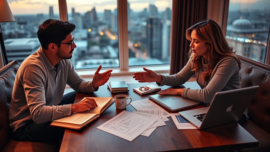 You might think disagreements are unavoidable, but effective communication strategies can turn conflict resolution into a partnership strength. When disagreements arise, stay calm, listen actively, and express your feelings clearly. Use “I” statements to avoid blame and find common ground. It’s ironic how disagreements can foster understanding if you approach them with patience and openness. Embracing these strategies helps you navigate financial disputes smoothly, strengthening your relationship over time.