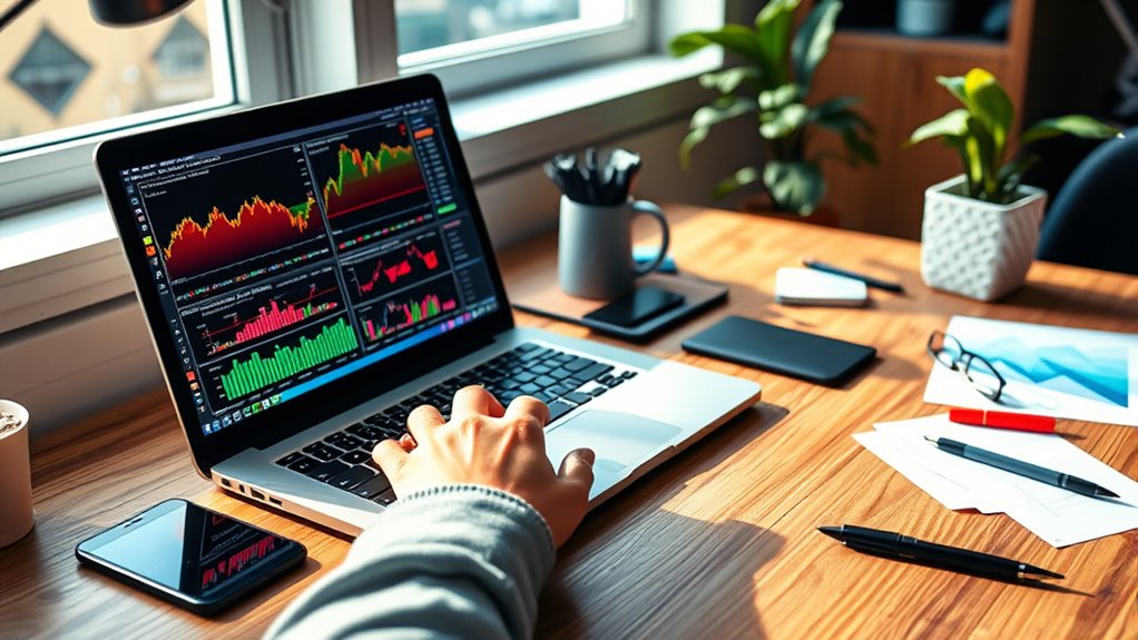 ETFs, or exchange-traded funds, make it easy for beginners to diversify their investments without buying individual stocks or bonds. They’re investment funds that pool various assets like stocks, bonds, or commodities into one convenient package. You can buy and sell ETFs on major stock exchanges throughout the trading day, just like stocks. This flexibility allows you to quickly adjust your portfolio. ETFs offer broad exposure to different sectors or markets, helping spread out your risk. They typically have lower fees than mutual funds and are more tax-efficient, making them cost-effective choices. Because they are traded like stocks, ETFs can be bought and sold at any time during market hours, giving investors greater control. This liquidity ensures you can respond swiftly to market changes and opportunities. Additionally, the ability to trade ETFs during market hours can help you manage risks associated with cyber threats, which are increasingly relevant in today’s digital environment. Understanding market volatility can also help you make better timing decisions when trading ETFs. Being aware of market fluctuations can assist in optimizing your entry and exit points. Whether you’re interested in tech, healthcare, or commodities, there’s an ETF for that. With minimal capital needed, ETFs are an accessible way to build a diversified investment foundation for your financial future.