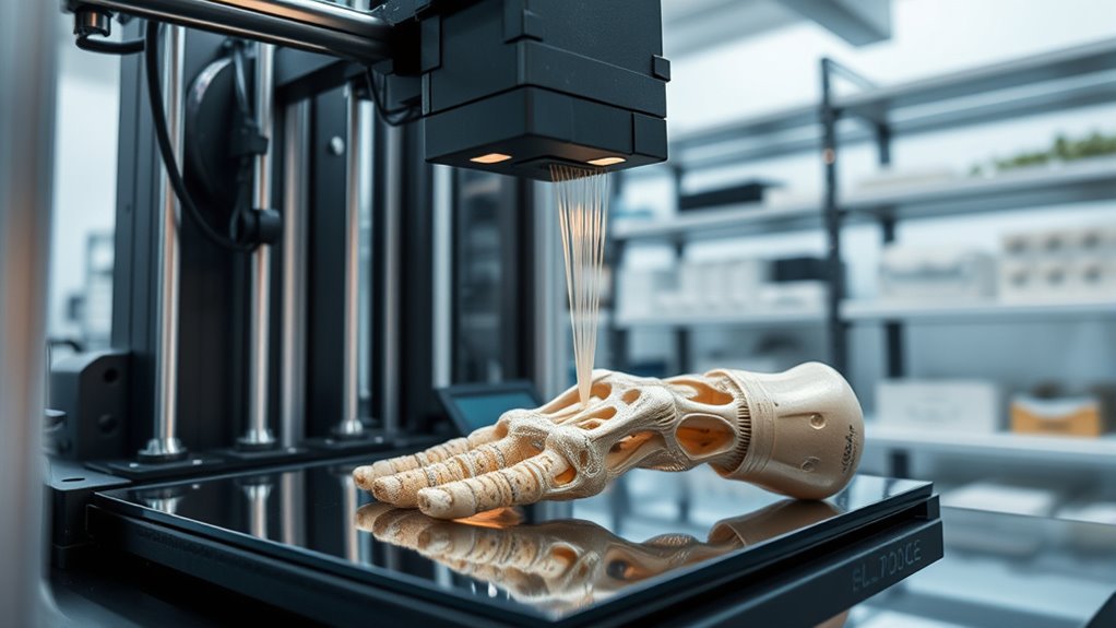 Furthermore, 3D printing’s versatility extends to producing end-use parts, especially in industries where customization is key. You can create tailored solutions that fit specific requirements, whether for medical implants or bespoke industrial tools. The technology also reduces material waste because it adds material only where needed, making it more sustainable. As you explore these applications, you’ll notice how the combination of bioprinting and rapid prototyping is pushing the boundaries of what’s possible, making industries more efficient, cost-effective, and innovative. From creating living tissues to developing prototypes at lightning speed, 3D printing is not just a trend—it’s a fundamental shift that’s shaping the future of manufacturing and medicine in profound ways.