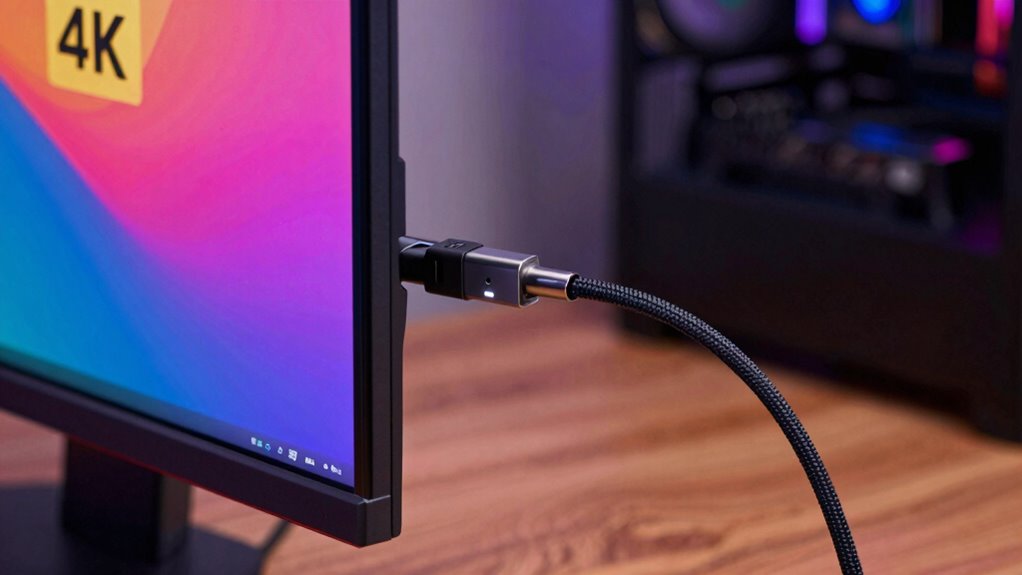 So, next time you marvel at those silky-smooth 4K 144Hz visuals, remember—it’s not just your GPU or monitor. Your cable and port choices play a sneaky, vital role. Ironically, the tiny cables you overlook can make or break your gaming bliss. Don’t assume all cables are created equal—double-check those specs. Because in the world of high-refresh-rate 4K, your setup’s success hinges on the smallest, least glamorous parts.