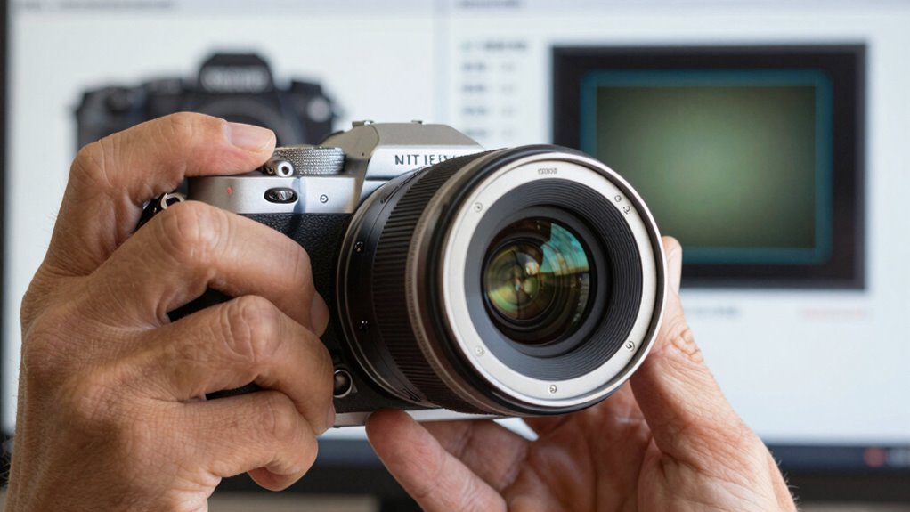 Focusing on the ecosystem and accessories of a mirrorless camera guarantees you select a system that can grow with your skills and projects. A strong ecosystem offers better sensor compatibility, making sure you can use a range of lenses and accessories without compatibility issues. Accessory diversity is also vital, giving you options like external flashes, microphones, and battery grips to enhance your photography.