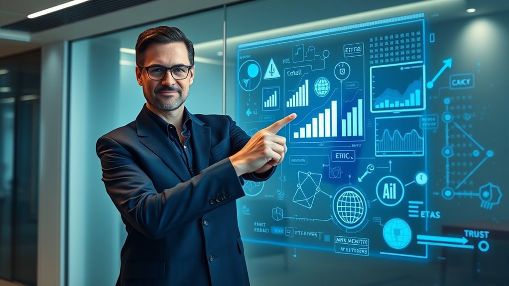 To earn trust in machine-driven decisions, you need to openly show your digital ethics and responsible practices. Transparency about how you collect, use, and share data helps build consumer confidence. Implement strong privacy measures and clear policies, and be honest about AI’s role in your operations. Showing accountability through certifications and ethical oversight reassures your audience. Keep exploring to discover more ways you can strengthen trust with your ethical commitments.