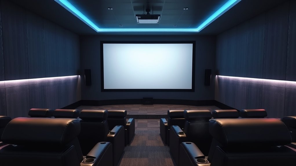 The ideal room size for a 4K projector is about 12 to 20 feet in length with a width that supports comfortable viewing distances. I recommend a space where you can comfortably sit 1.5 to 2.5 times the diagonal screen size away from the projector. This guarantees sharp image quality and immersion without straining your eyes or losing detail, making your home theater experience truly spectacular.