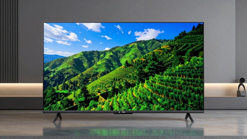 Ever wondered what makes a Mini-LED TV stand out in picture quality? It’s primarily the technology behind the backlighting. Mini-LEDs use thousands of tiny, precisely controlled lights, creating deeper blacks and brighter highlights. Local dimming zones are key—they allow the TV to adjust light in specific areas, improving scene depth and reducing blooming effects. HDR performance also gets a boost, delivering vivid colors and detailed contrast across formats like Dolby Vision and HDR10+. The high peak brightness levels achievable with Mini-LED panels make HDR content pop, adding impact and realism. Plus, advanced processing algorithms analyze scene content in real-time, fine-tuning backlight zones for sharper clarity. All these features combine to deliver a picture that’s more vibrant, detailed, and lifelike than ever before.
