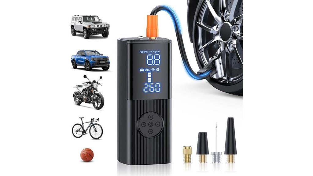 Best For: individuals seeking a portable, powerful, and easy-to-use air compressor for quick inflation of vehicle tires, bikes, and sports balls.