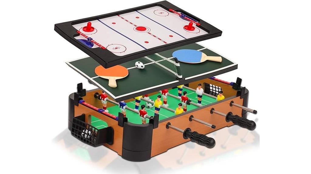 Best For: parents and kids seeking a compact, versatile indoor game table that combines air hockey, table tennis, and foosball for active, social play in small spaces.