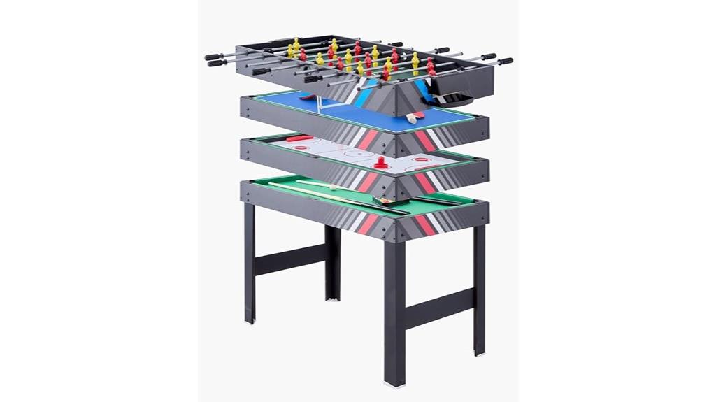 - Combines four popular games into one compact table, saving space and increasing entertainment options.