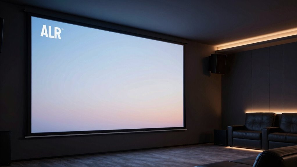 I’ve rounded up the 13 best ALR projector screens around 100 inches for 2026, including motorized, fixed frame, and portable options. These screens feature advanced ambient light rejection, sleek designs, and compatibility with 4K and HDR content, making them perfect for home theaters, gaming, and presentations. Whether you prefer foldable outdoor models or ultra-stable fixed frames, I’ve got options for every need. Keep going to discover which screen suits your setup best.