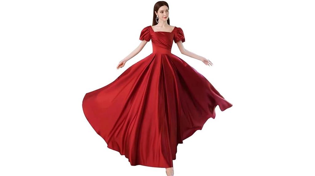 Puffy sleeve prom dresses with satin A-line gowns are perfect for women seeking a regal, romantic look that combines classic elegance with trendy details. I love how these dresses feature thick, high-quality satin fabric that feels luxurious and holds its shape well. The puffed sleeves add a dramatic, vintage touch, while the A-line silhouette flatters many body types. Keep in mind, some dresses might run small or be long, so sizing up or hemming may be necessary. Many designs include adjustable laced backs, making for a customizable fit. Overall, they’re stunning options that stand out, though checking details like pockets and seams can save you surprises.