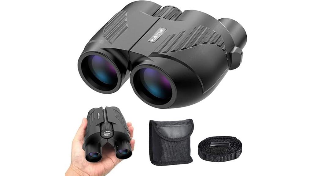 If you’re looking for versatile binoculars that suit both adults and kids, the 20×25 model is an excellent choice. These binoculars deliver high-definition, vibrant images with minimal distortion, thanks to large 16mm eyepieces and advanced lens coatings. Their compact, lightweight design (under half a pound) makes them easy to carry and fold for travel. Built with shockproof silicone and non-slip rubber armor, they’re durable and comfortable to handle. Perfect for outdoor adventures like birdwatching, hiking, or sports, they perform well even in low light. Their easy focus and reliable construction make them a popular option for both casual and serious explorers.