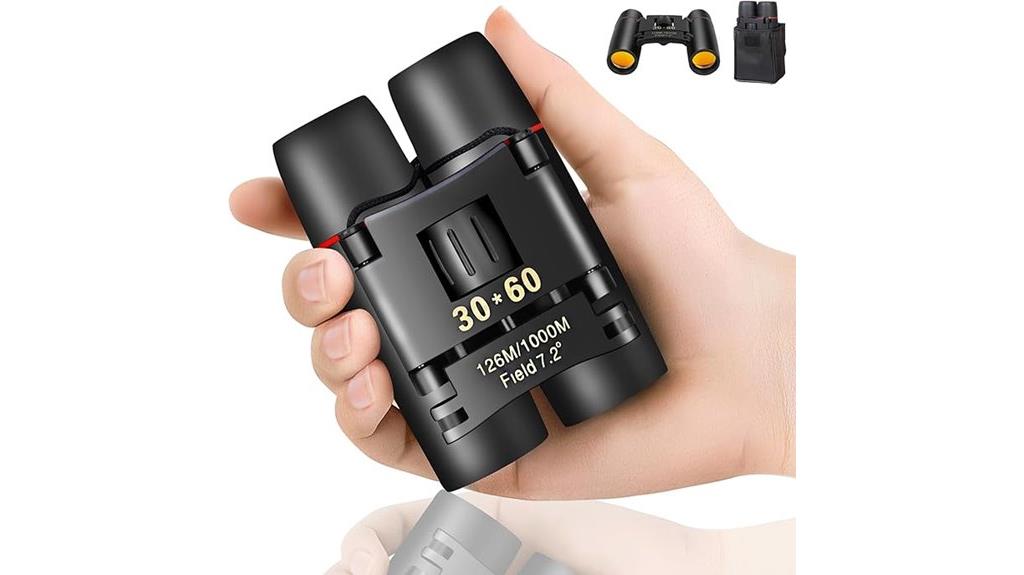 If you’re seeking a pair of binoculars that balance portability with impressive magnification, 30×50 high-powered binoculars are a solid choice for casual explorers and outdoor enthusiasts. They’re compact, waterproof, and versatile, suitable for activities like bird watching, hunting, and stargazing. With 30x magnification, a 26mm field of view, multilayer-coated lenses, and BAK4 prisms, they deliver bright, clear images. The foldable design, impact-resistant rubber coating, and included carrying case make them easy to carry and quick to use. While some optical flaws exist, these binoculars are ideal for those seeking affordable, lightweight gear for occasional outdoor adventures.