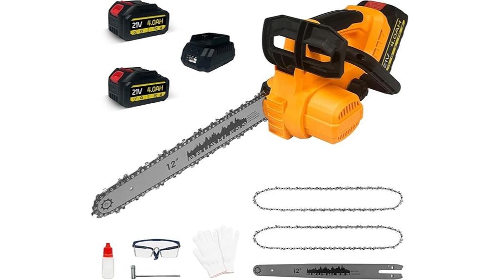 - Includes comprehensive accessories such as chains, guide bars, safety gear, and replacement blades for versatile use.