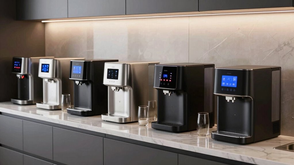 When choosing a countertop water dispenser, I consider factors like temperature range options to suit my preferences, water capacity to meet my daily needs, and safety features that guarantee peace of mind. Ease of installation and straightforward maintenance are also key to making certain I get a model that fits seamlessly into my routine. By keeping these points in mind, I can find a dispenser that’s both convenient and reliable.