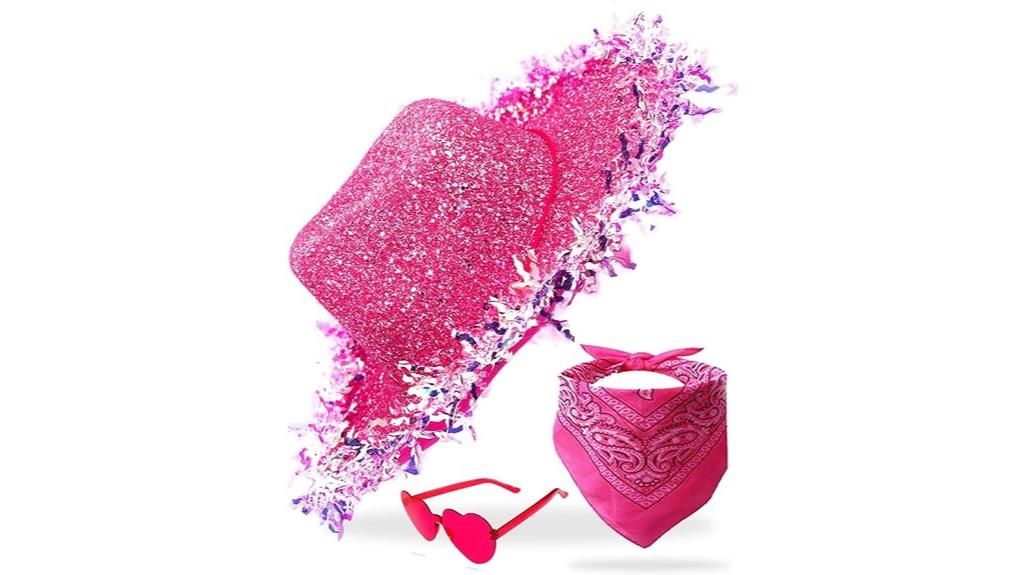 Cowboy hats with reflective sequins and glitter foil brims are perfect for women who want to stand out at festive events. These vibrant hats combine sparkle and style, making them ideal for bachelorette parties, birthdays, or themed celebrations like a disco cowgirl night. Designed with a sturdy build and eye-catching trim, they’re more than just fun accessories—they’re statement pieces. The set includes a pink disco cowgirl hat, bandana, and heart-shaped sunglasses, creating a complete, playful look. Whether you’re hitting a milestone birthday or just want to shine, these reflective sequin cowboy hats make every celebration unforgettable.