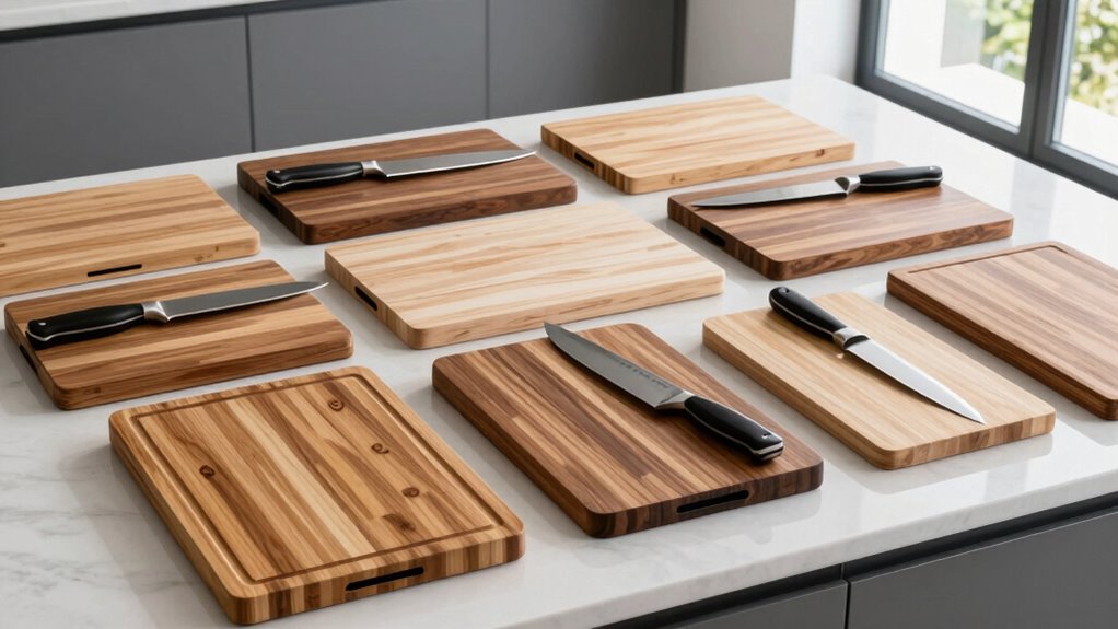 If you’re searching for the 15 best cutting boards for chef knives in 2026, I can help you find options that suit your needs. From durable bamboo and stainless steel to versatile BPA-free plastics, there’s a wide range of surfaces to safeguard your blades and guarantee safe prep work. Each board offers unique features like double sides, non-slip grips, or space-saving designs. Stick around, and you’ll discover the top picks to elevate your kitchen game.