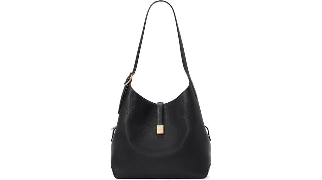 The Kate Spade New York Womens Deco Pebbled Leather Large Shoulder Bag stands out as an ideal choice for those seeking a timeless, versatile, and high-quality handbag. Its Art Deco-inspired design, featuring new K hardware, exudes elegance. Made from structured pebbled leather, it maintains its shape and offers a luxurious feel without chemical odors. The bag’s sleek silhouette, in classic colors like black and taupe, pairs effortlessly with any outfit. With three spacious compartments, including a secure zipper center, it’s practical for daily essentials. Durable, well-crafted, and stylish, this bag combines function and fashion, making it a smart long-term investment.