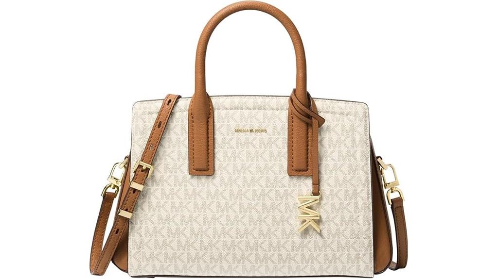 If you’re looking for a stylish, everyday handbag that combines practicality with fashionable appeal, the Michael Kors Laila Small Satchel is an excellent choice. Made from durable Signature logo-print canvas, it offers a structured silhouette that’s both chic and resilient. Its perfect size fits daily essentials comfortably without feeling bulky, making it ideal for regular use—even for an elderly mom. Customers love its vibrant colors, thoughtful compartments, and overall high-quality feel. Plus, the adjustable crossbody strap adds versatility. While rare quality control issues exist, most users find it super cute, functional, and a beautiful addition to any collection.