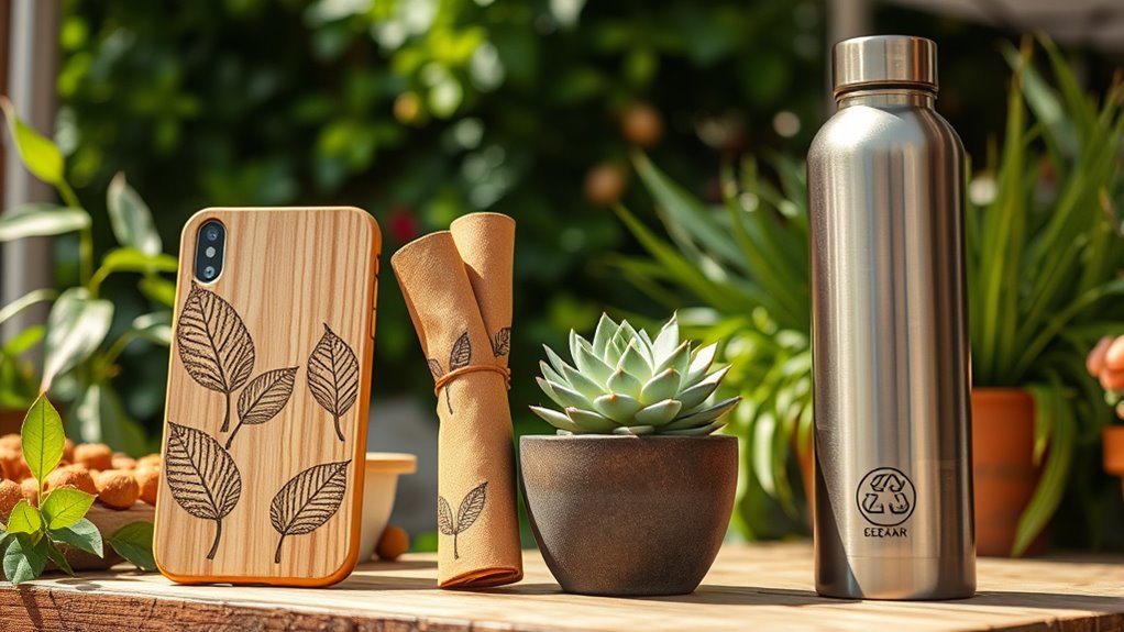 Choosing eco-friendly gifts in 2025 means paying close attention to the materials they’re made from, since sustainable options should come from renewable, biodegradable, or recyclable sources. I look for products certified by organizations like FSC, Fair Trade, or Organic standards, which ensure responsible sourcing and ethical practices. It’s also important to consider packaging; eco-conscious gifts often feature minimal or sustainable packaging to reduce waste. Durability and reusability are key—materials that last longer and can be reused decrease the need for frequent replacements, minimizing environmental impact. Additionally, I prefer items free from harmful chemicals like BPA, phthalates, or toxic dyes, ensuring safety for both the environment and the recipient. These standards help me select gifts that truly support sustainability and make a positive difference.