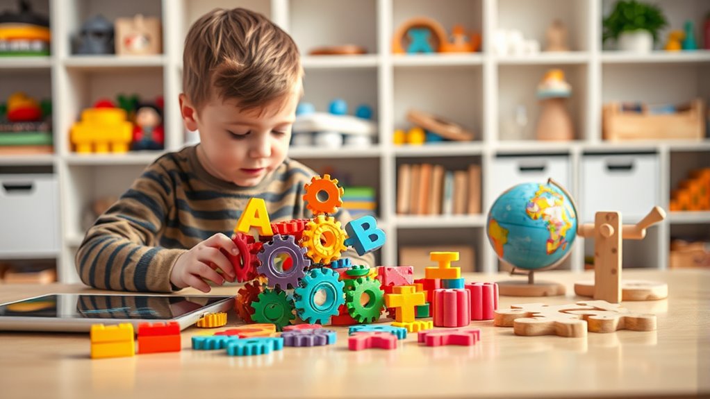 What really makes an educational toy engaging for a child? It’s about capturing their attention long enough to foster curiosity and learning. Toys with interactive features like sounds, lights, and movement do a great job of keeping kids interested and motivated. Age-appropriate complexity is essential too — if a toy is too simple or too challenging, kids lose interest. Open-ended play elements encourage creativity and exploration, making the experience more engaging. Additionally, toys that match a child’s individual interests and developmental stage are more likely to hold their enthusiasm and active participation. When choosing an educational toy, look for those that stimulate curiosity, provide variety, and can adapt to your child’s growth, ensuring learning remains fun and captivating over time.