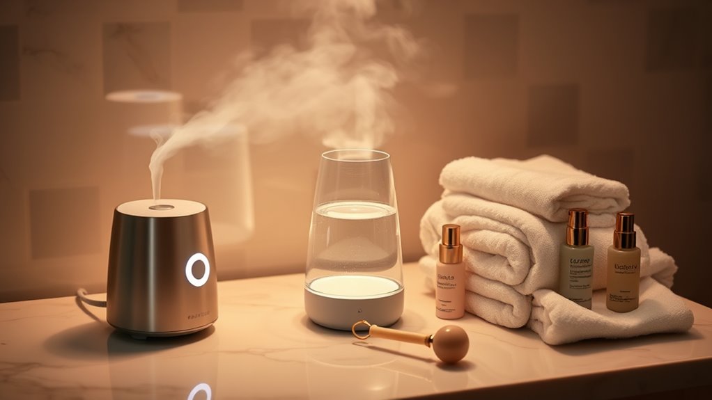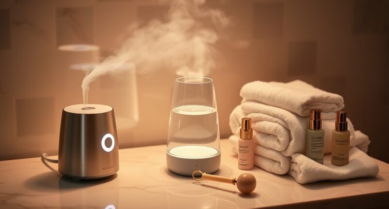 Think of choosing a facial steamer like finding the perfect key to unlock your skin’s true glow. Each option is a different door, leading to spa-quality radiance right at home. With the right steamer, you’ll turn your daily routine into a luxurious escape, revealing fresh, luminous skin. So, pick your key wisely and step into a world where your best skin is just a steam away—your personal sanctuary awaits.