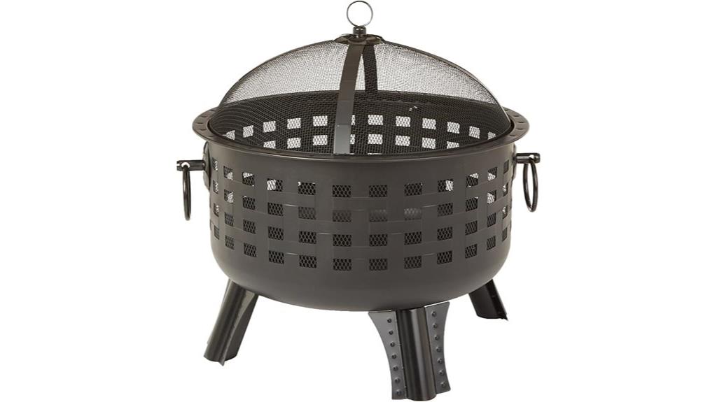 The Sunnydaze Crossweave Outdoor Fire Pit stands out as an excellent choice for those seeking a large, stylish fire pit capable of hosting sizable gatherings. With a 36-inch diameter and a sturdy alloy steel build, it’s perfect for outdoor parties with 6-8 people. Its black painted finish resists rust, while the decorative crossweave pattern adds visual appeal. The mesh-covered ventilation promotes steady fires with less smoke, and safety features like the outer ring and spark screen help contain embers. Easy to assemble and portable, it’s versatile for backyard bonfires, camping, or outdoor entertaining. Overall, it combines functionality, safety, and style in a durable package.