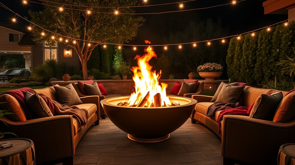 When choosing a fire pit, safety features are key. I look for models with sturdy, heat-resistant materials and a spark screen to contain embers. An automatic shut-off or safety shut-off valve provides me peace of mind, especially if I have kids or pets. A stable base prevents tipping, and clear instructions guarantee proper use. These features help me enjoy my fire pit without worries.