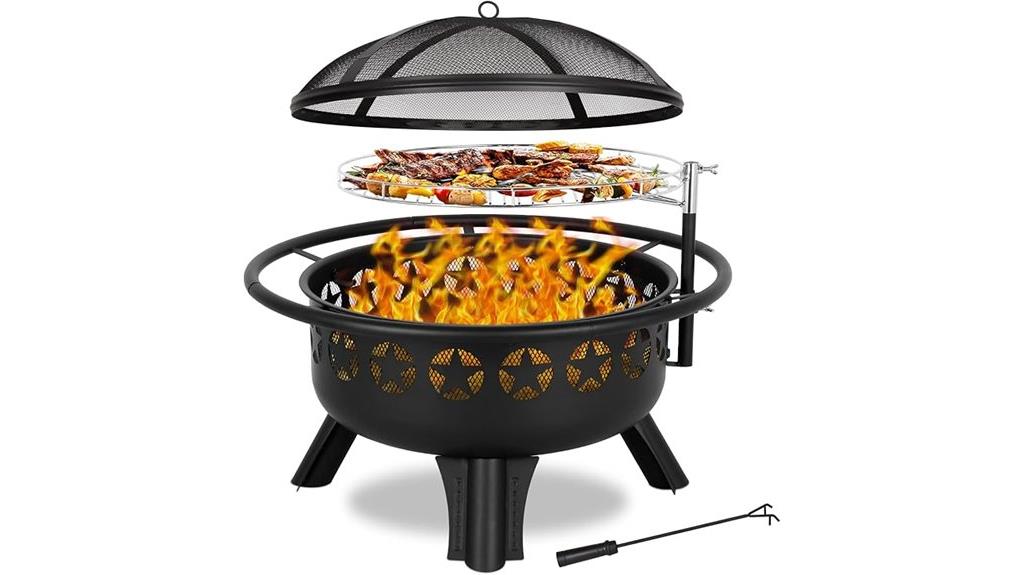 Best For: outdoor enthusiasts who want a durable, versatile fire pit that combines heating and grilling for backyard gatherings or camping adventures.
