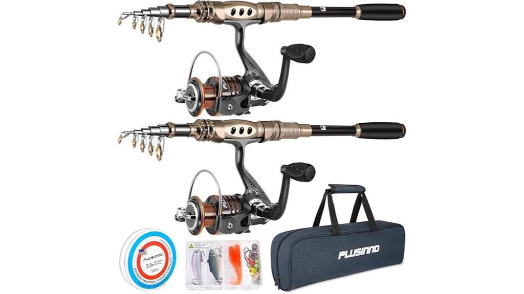 PLUSINNO Fishing Rod and Reel Combos – Carbon Fiber Telescopic Fishing Pole – Spinning Reel 12 +1 Shielded Bearings Stainless Steel BB