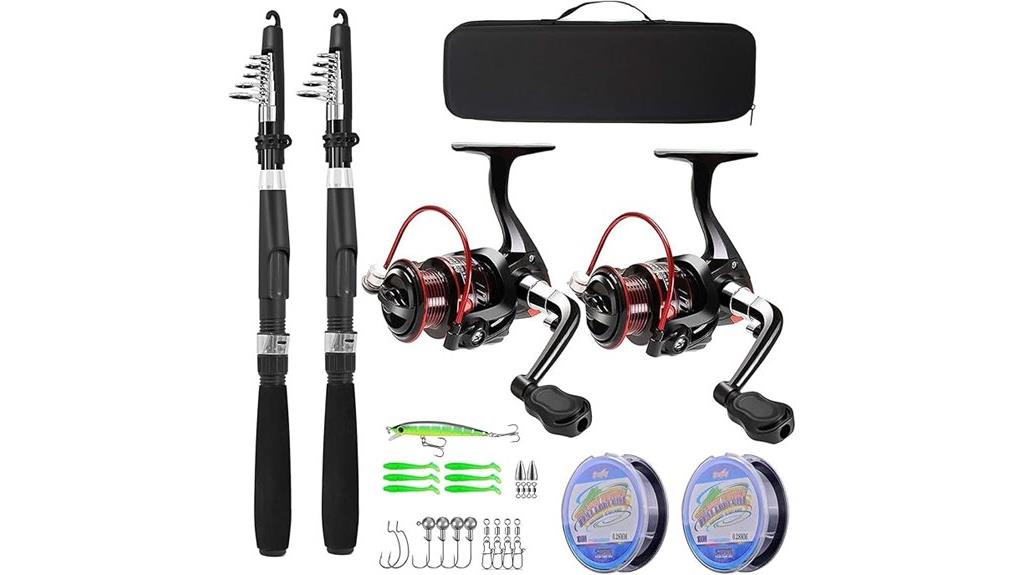 Looking for a portable fishing solution that doesn’t compromise on performance? The Fishing Pole Combo Set with Collapsible Rods and Reels is perfect. It includes two lightweight, 6.89-foot carbon fiber telescopic rods, making transport easy with a compact case. The set also offers two folding spinning reels with metal handles and adjustable features. It comes with essential accessories like lures, hooks, sinkers, and a carrying bag, making it ideal for casual anglers. Weighing just 1.1 pounds, it’s great for quick trips and beginners. Though some users note durability concerns, overall, it’s a versatile, convenient choice for those seeking portability without sacrificing functionality.
