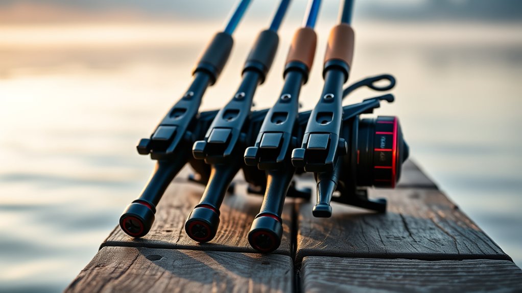 Choosing a fishing rod with a comfortable handle can make a noticeable difference in your overall experience on the water. A handle that feels good in your hand reduces fatigue and helps you maintain a secure grip during long hours. Materials like cork, EVA foam, and rubber each offer different benefits—cork feels natural and soft, EVA provides durability and a good grip, while rubber is slip-resistant and tough. An ergonomic design, with contoured shapes and textured surfaces, enhances comfort and control. A well-designed handle also stays non-slip even when wet or sweaty, ensuring stability. Additionally, the length and thickness of the handle matter; longer and thicker handles typically provide better leverage and reduce hand strain, making your fishing sessions more enjoyable.