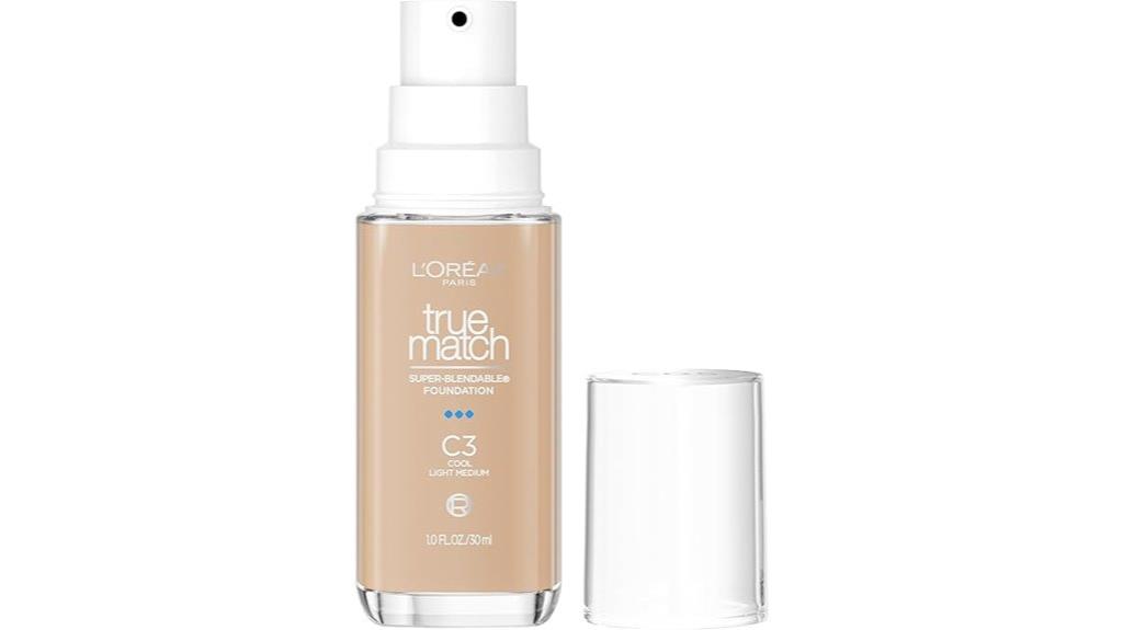 L’Oreal Paris True Match Foundation in shade C3 is an excellent choice for those seeking a natural, medium coverage liquid makeup that seamlessly matches a variety of skin tones. Its unique formula uses up to six pigments for precise color matching, ensuring a true-to-skin look. With 47 shades catering to cool, neutral, and warm undertones, I find it easy to get a perfect match. The lightweight, blendable consistency provides a natural finish that feels comfortable and looks fresh all day. Plus, it’s vegan, fragrance-free, and suitable for sensitive skin, making it a reliable, affordable option for a flawless, everyday base.