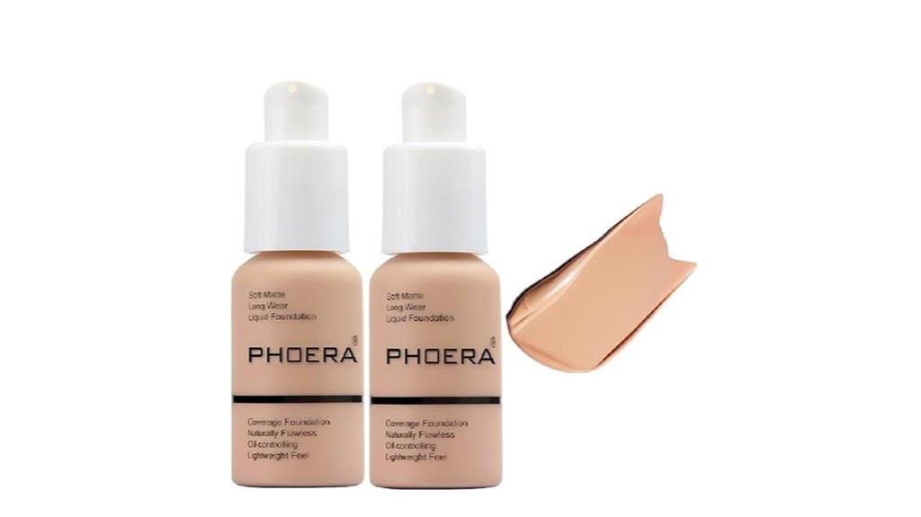 PHOERA Full Coverage Foundation (2 Pack, 30ml, 24HR Matte, Oil Control, Flawless Concealer, 103 Warm Peach)