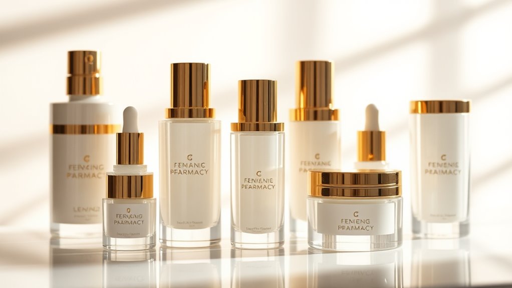 A strong brand reputation is essential when selecting luxury French pharmacy skincare, especially since dermatologist recommendations and positive reviews often reflect a product’s effectiveness and safety. When a brand consistently earns high customer satisfaction ratings, it shows trustworthiness and proven results. Established brands also tend to have transparent ingredient lists and clear manufacturing standards, which guarantee product safety and quality. Dermatologist endorsements and clinical testing further confirm a brand’s credibility and dedication to skin health. Brands that invest in innovation and research-backed formulations maintain their reputable status within the industry. Additionally, certification seals like cruelty-free, eco-friendly, or dermatologist-developed labels boost a brand’s reliability and appeal. Overall, a solid reputation helps ensure you’re choosing a product that’s both safe and effective.
