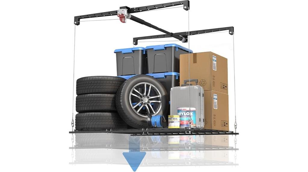 Best For: homeowners seeking a heavy-duty, space-saving overhead storage solution to declutter and maximize garage space.