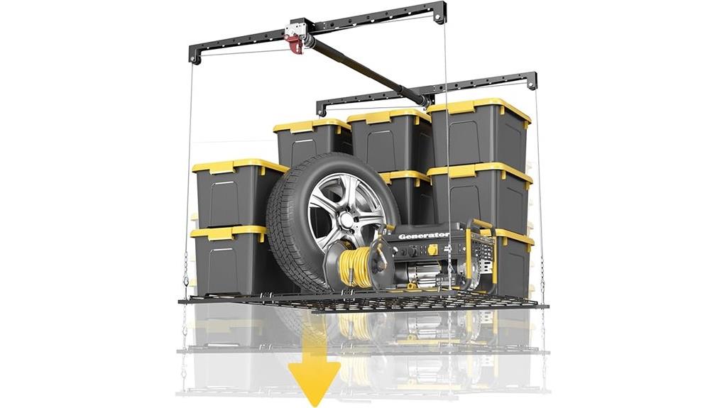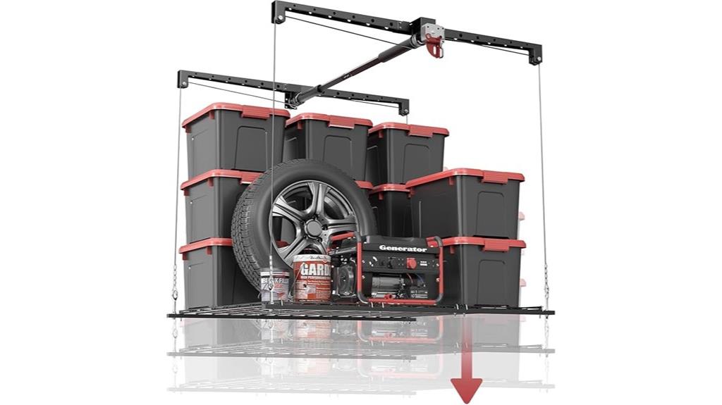 Best For: homeowners and garage owners seeking a durable, space-efficient overhead storage solution for heavy or bulky items with easy access and secure safety features.